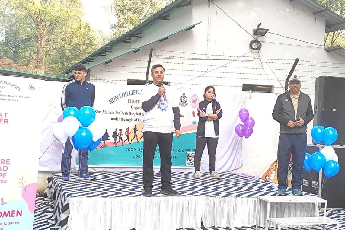 विश्व कैंसर दिवस ( 4 फरवरी ) के उपलक्ष्य में आयोजित गतिविधियों के अंतर्गत रविवार, 1 फरवरी 2026 को उत्तराखंड सब एरिया के तत्वावधान में श्री महंत इंदिरेश अस्पताल के ऑन्कोलॉजी विभाग तथा मिलिट्री हॉस्पिटल, देहरादून द्वारा संयुक्त रूप से कैंसर जागरूकता हेतु वॉकाथॉन एवं रन का आयोजन किया गया। कार्यक्रम का औपचारिक उद्घाटन रविवार को किया गया तथा रन को ब्रिगेडियर प्रफुल मोहन, कमांडेंट, मिलिट्री हॉस्पिटल, एवं डॉ. पंकज गर्ग, विभागाध्यक्ष, ऑन्कोलॉजी विभाग, श्री महंत इंदिरेश अस्पताल द्वारा हरी झंडी दिखाकर रवाना किया गया।